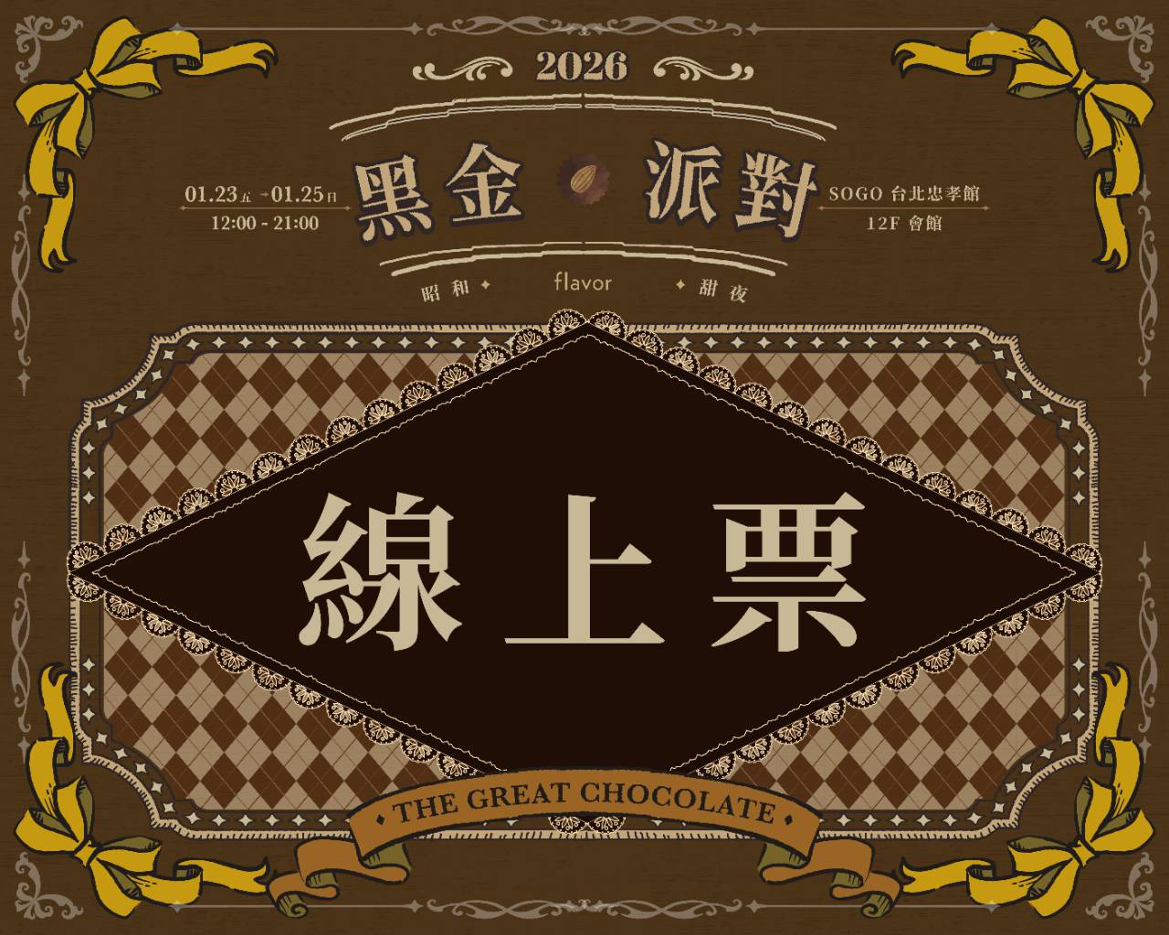 全台最大巧克力盛宴《黑金派對》2026 / 1 / 23 - 25 再次回歸! 延續集結最受巧克力迷熱愛的國內外精緻品牌,本屆更開啟全新昭和甜夜企劃,要將巧克力的深濃甜蜜融入大正昭和時代,帶來最繁華的日式黑金體驗,還有美國百年經典品牌 HERSHEY'S 好時與品牌合作黑金派對主題商品;